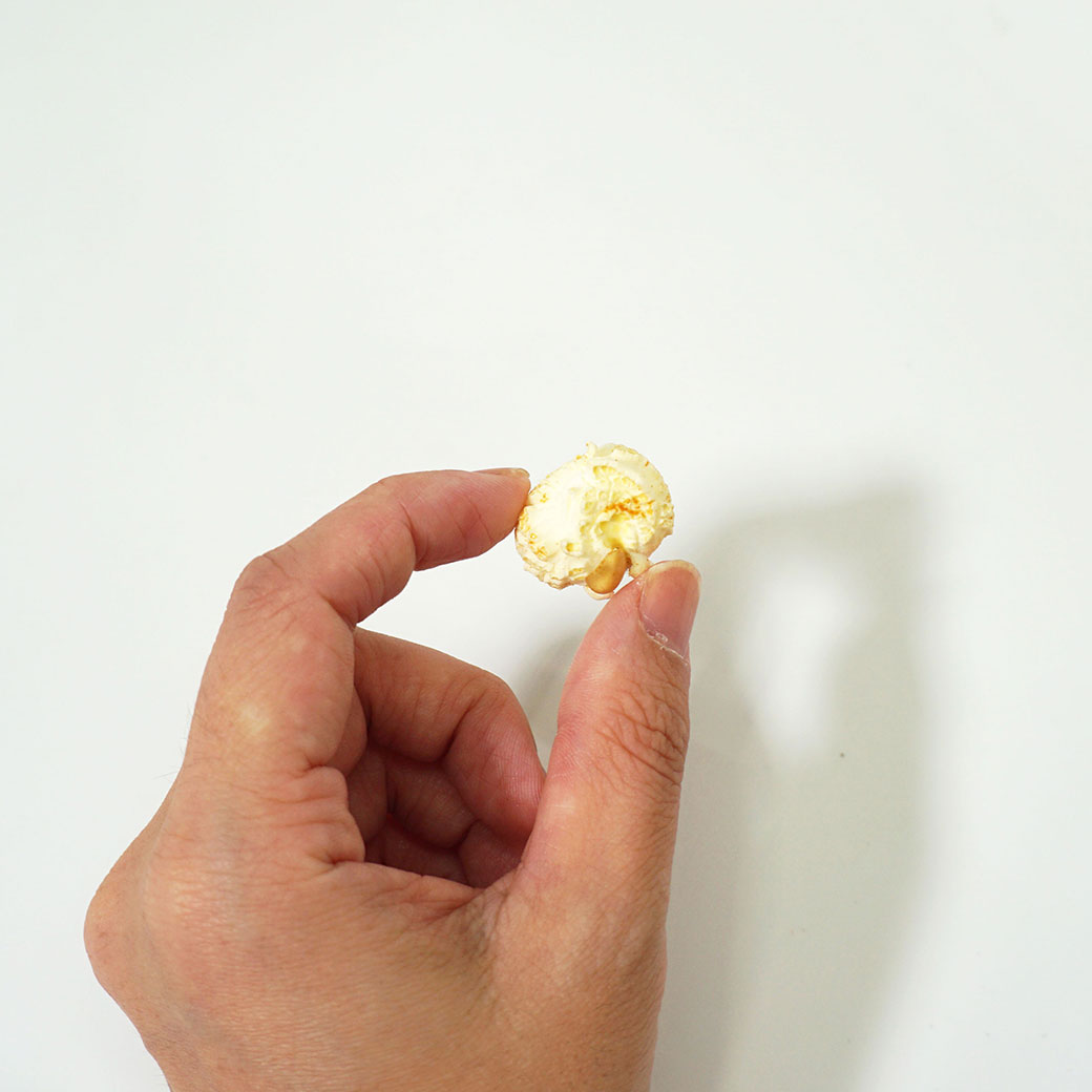 食品用ヒューマングレードの原材料を使用した犬用スナックポップコーンのチェダーチーズ味です。