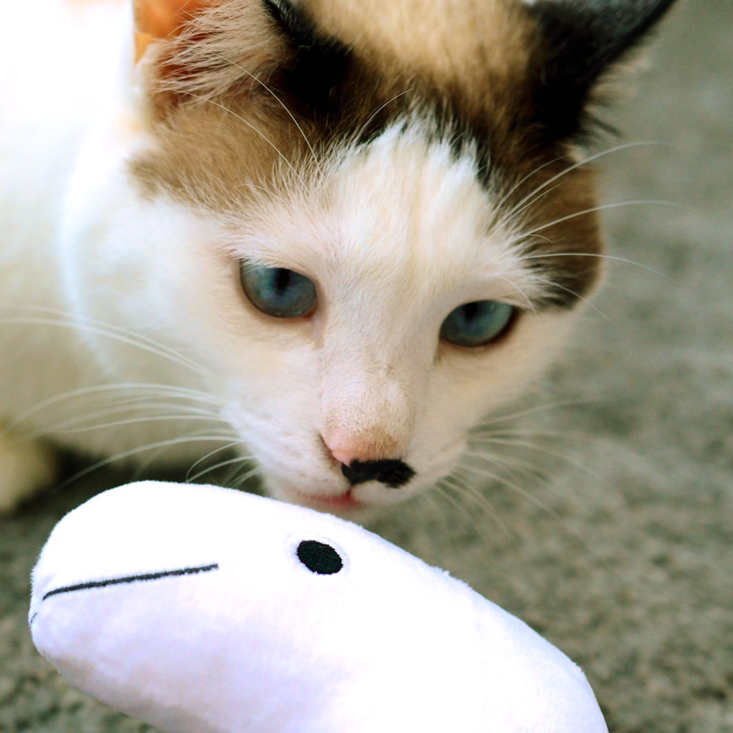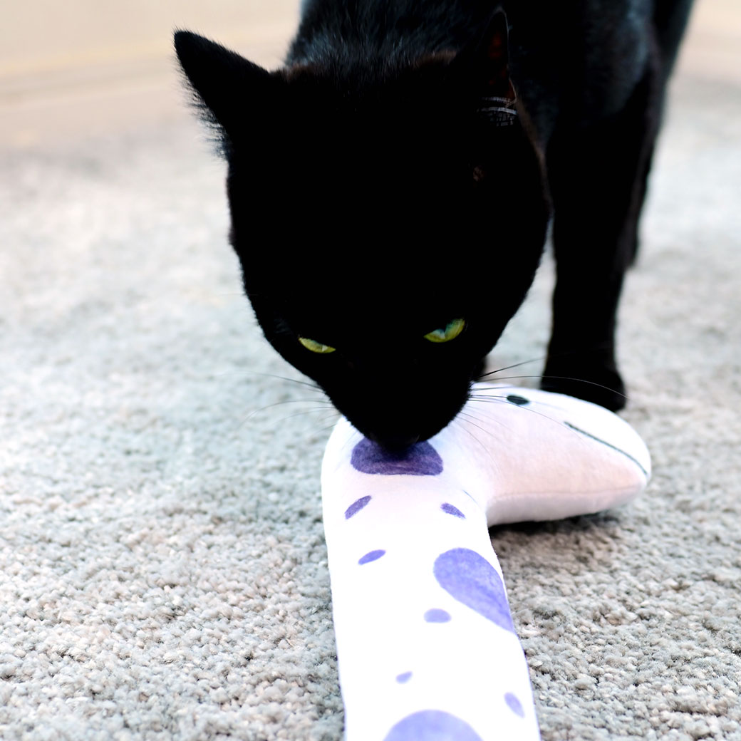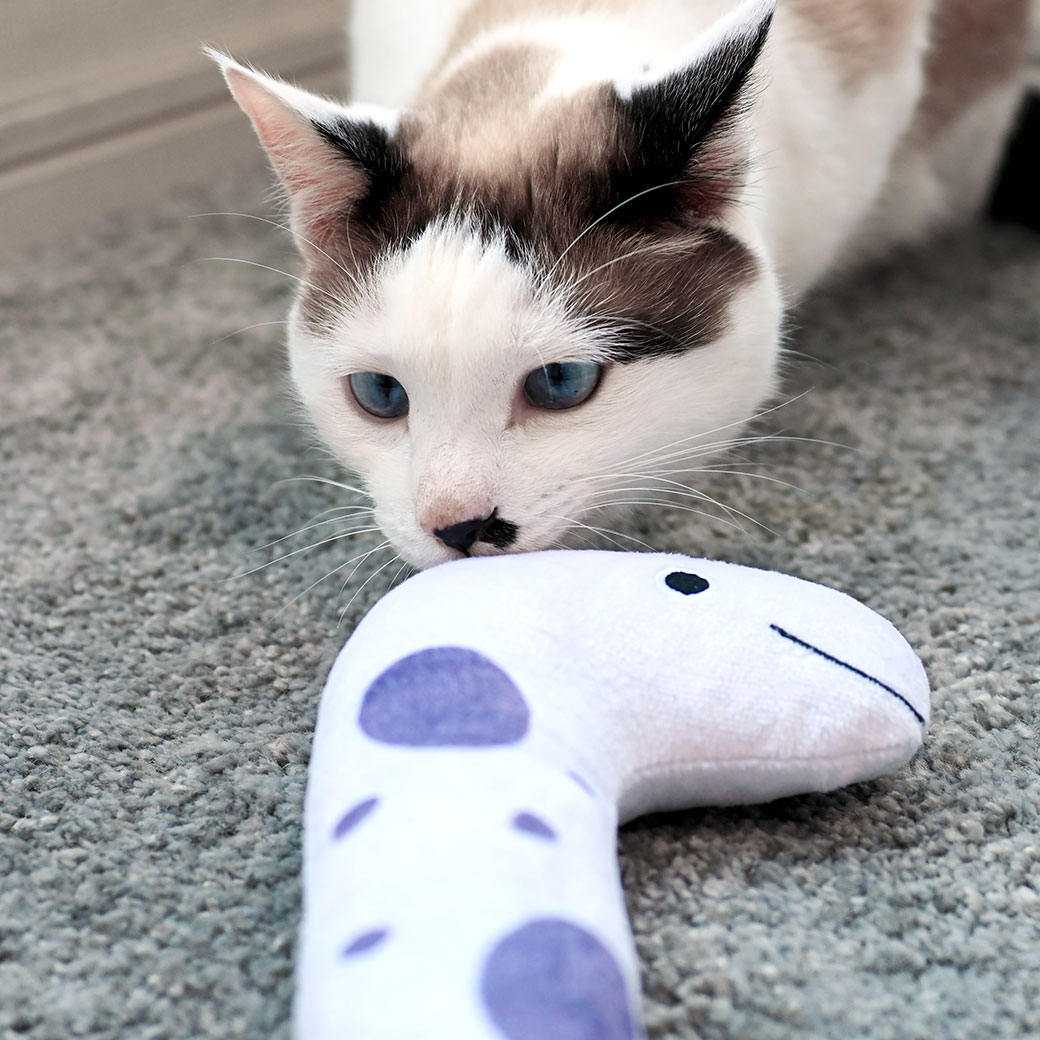 水族館のアイドル的存在、チンアナゴをイメージしたぬいぐるみおもちゃです。 中にはキャットニップがたっぷり入っていて、猫の本能をくすぐります。 ニョロっと細長い形は、蹴ったり、抱きついたりするのにぴったりのフォルム。 お部屋に並べてもかわいい、癒し系デザインです。