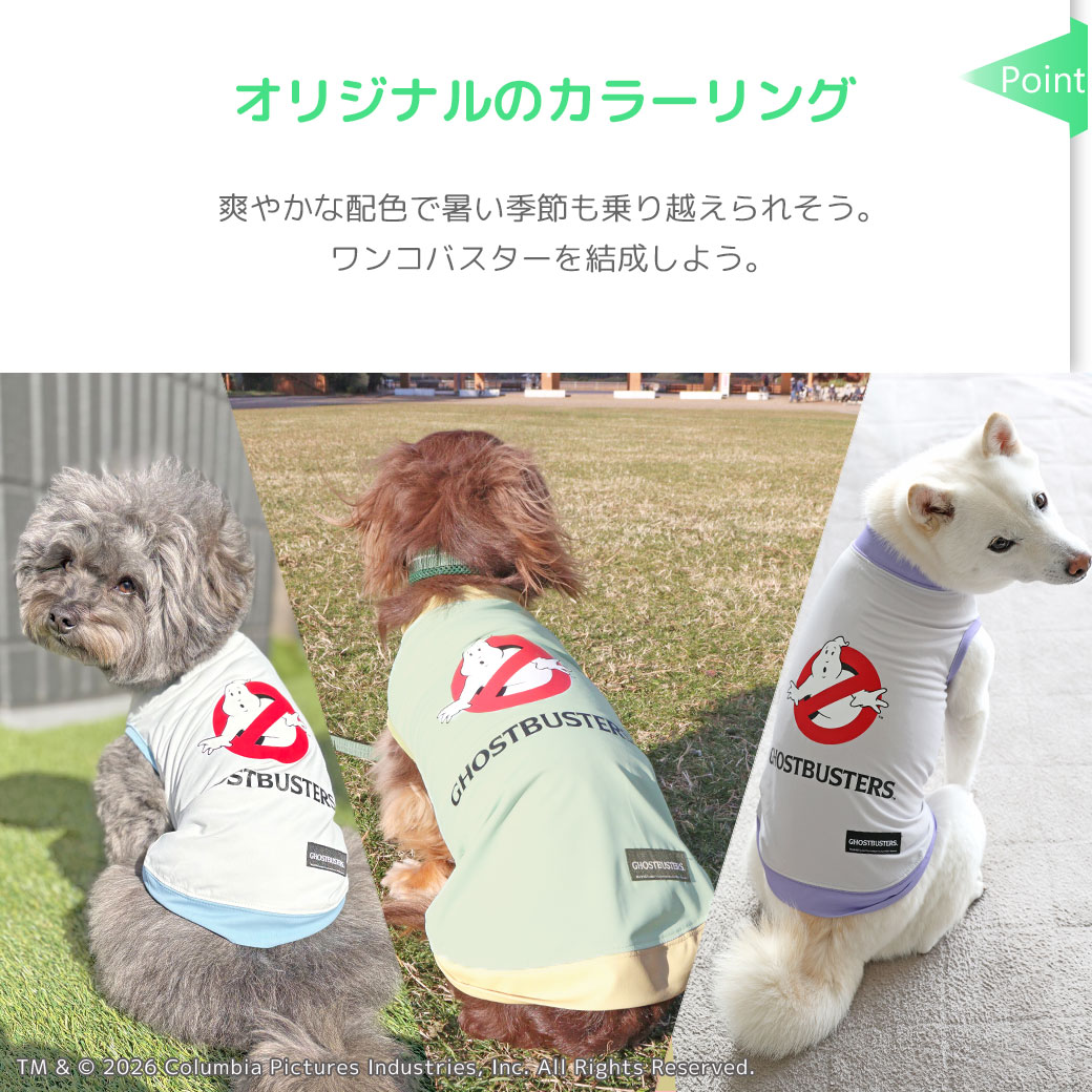 映画「GHOSTBUSTERSゴーストバスターズ」のNo Ghostロゴをプリントした接触冷感+防蚊のダブル機能のタンクトップ。