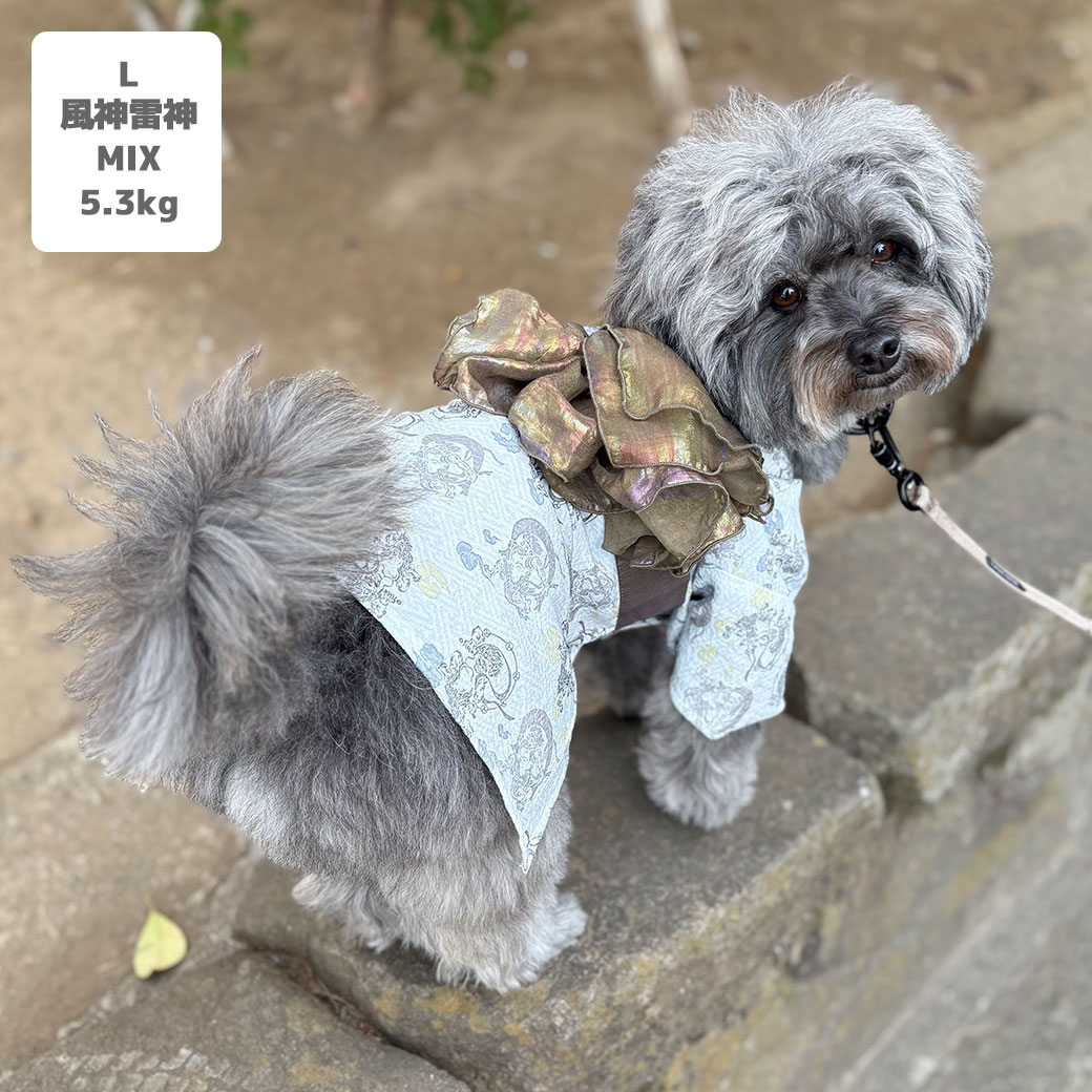 MIX5.3kg(首28/胴42/丈35cm)のごまくんは風神雷神のLを着用