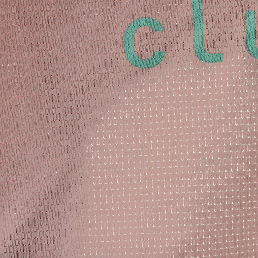 "NO SWEAT CLUB"「汗かかない仲間たち」みたいなニュアンスのユーモアあるロゴをプリントしました。