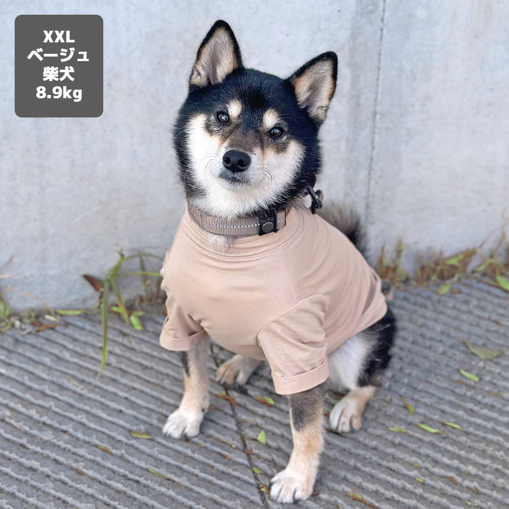 柴犬8.9kg(首33/胴54/丈39cm)のチョコプリンちゃんはベージュのXXLを着用