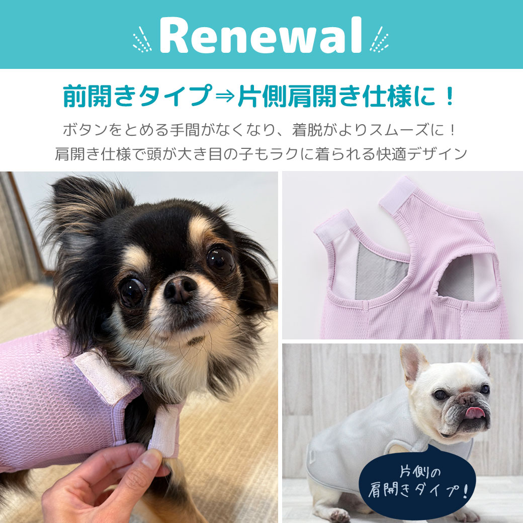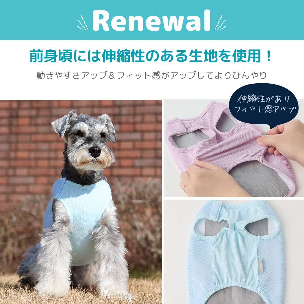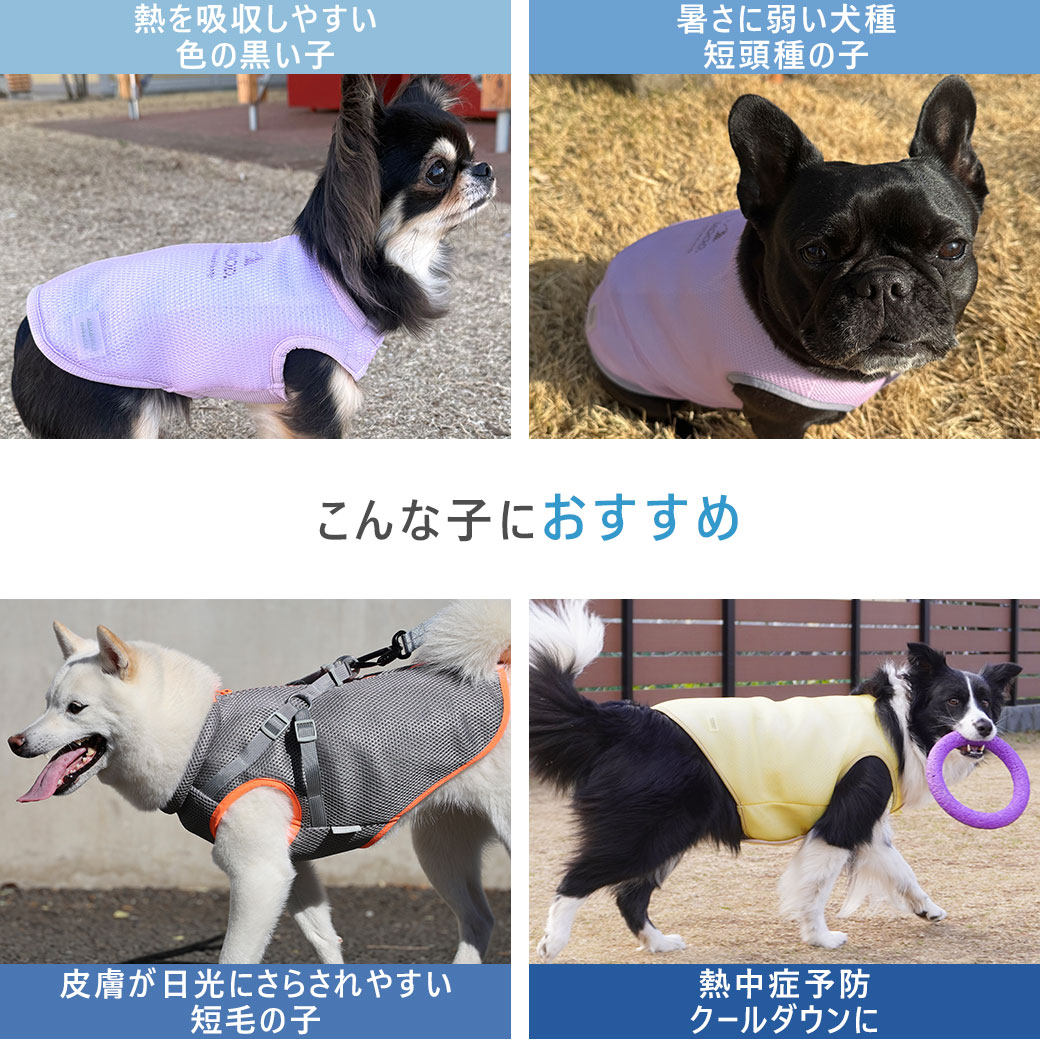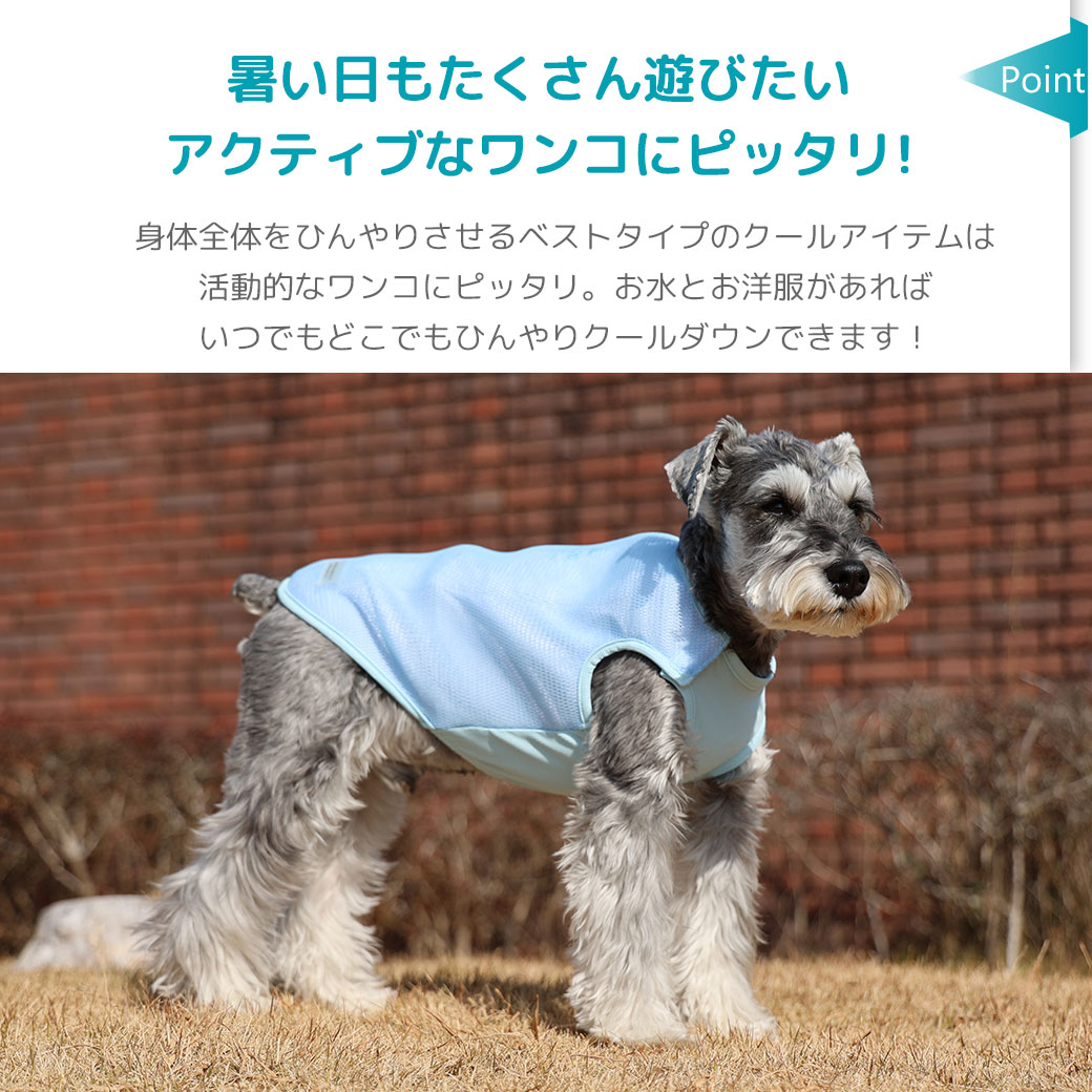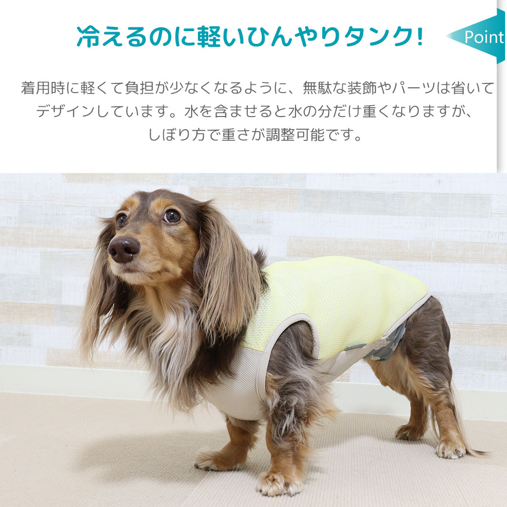 身体全体をひんやりさせるタンクタイプのクールアイテムは活動的なワンコにピッタリ。