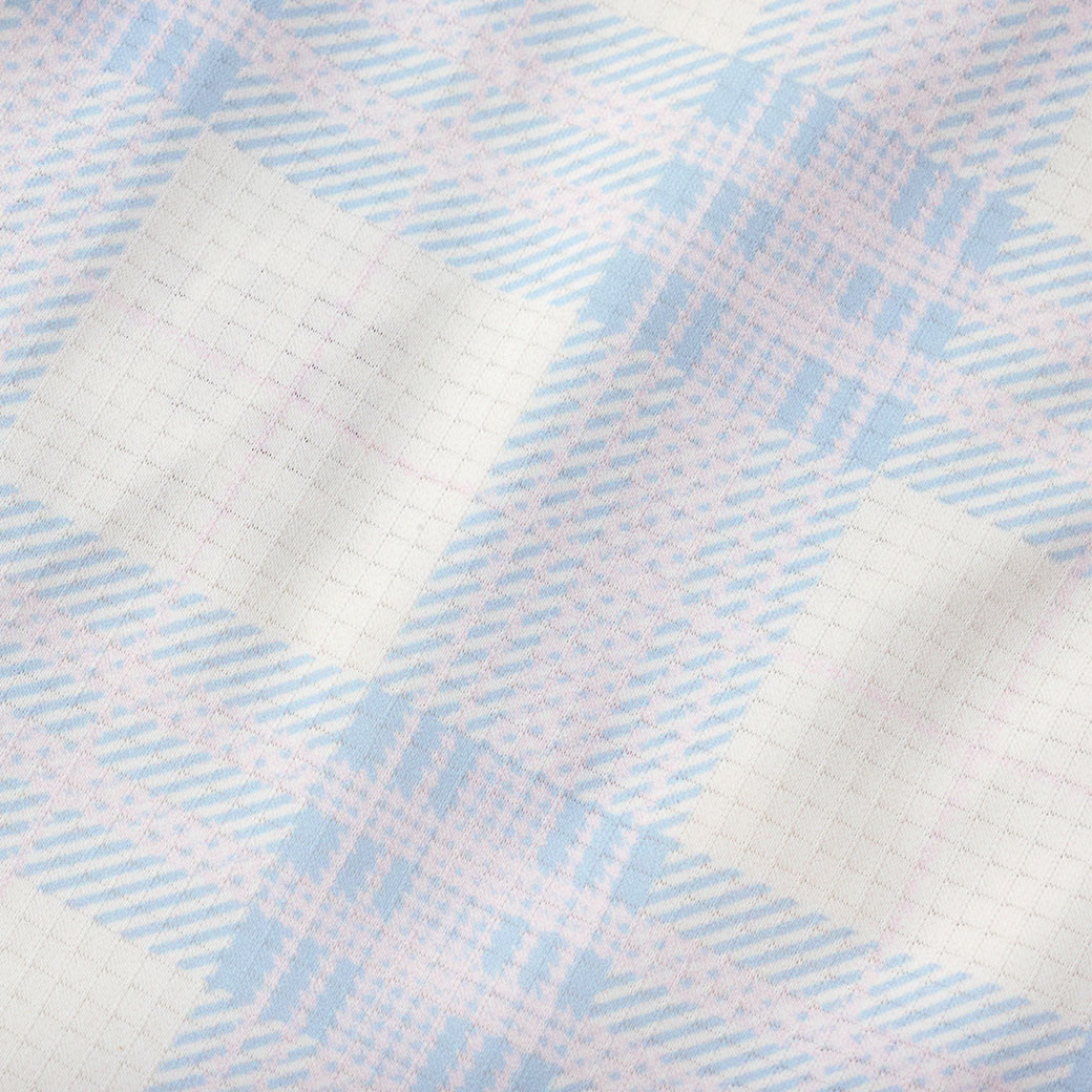 伸縮性のあるサラリとした手触りのメッシュ素材で、格子柄の地模様が入っています。