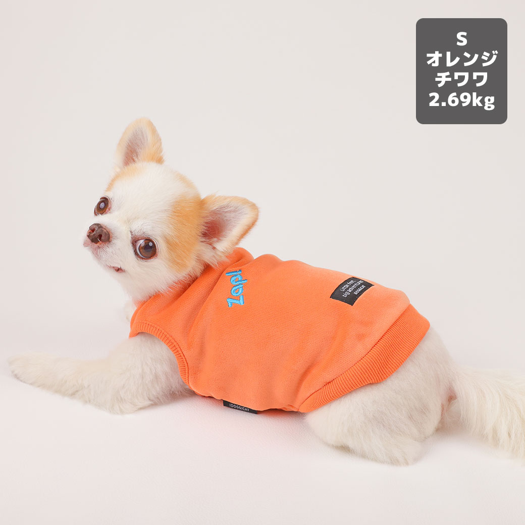 チワワ2.69kg(首21/胴34/丈25cm)の涼央くんはオレンジのSを着用
