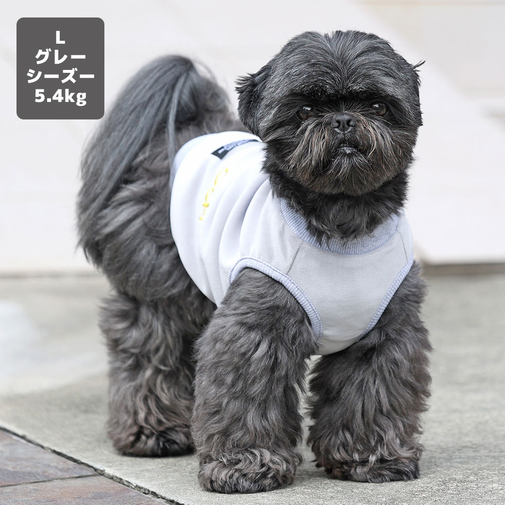 シーズー5.4kg(首26/胴38/丈38cm)のつぶくんはグレーのLを着用