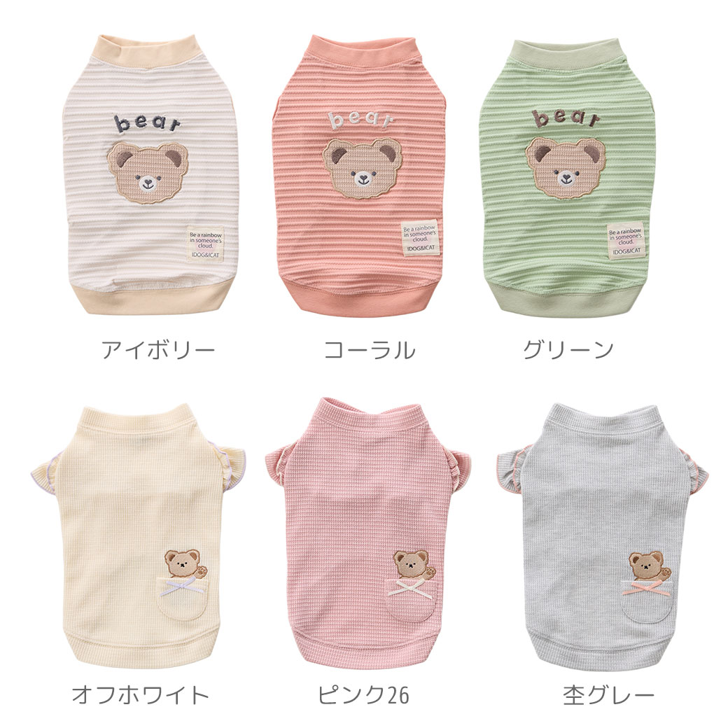 くまさんが目印のカジュアルキュートな犬用タンクトップです。 伸縮性の高いしっかりとした素材を使っているので愛犬の身体にフィットして動きやすいです。 防蚊・防虫加工なので、虫が多い季節にもピッタリのドッグウェアです。