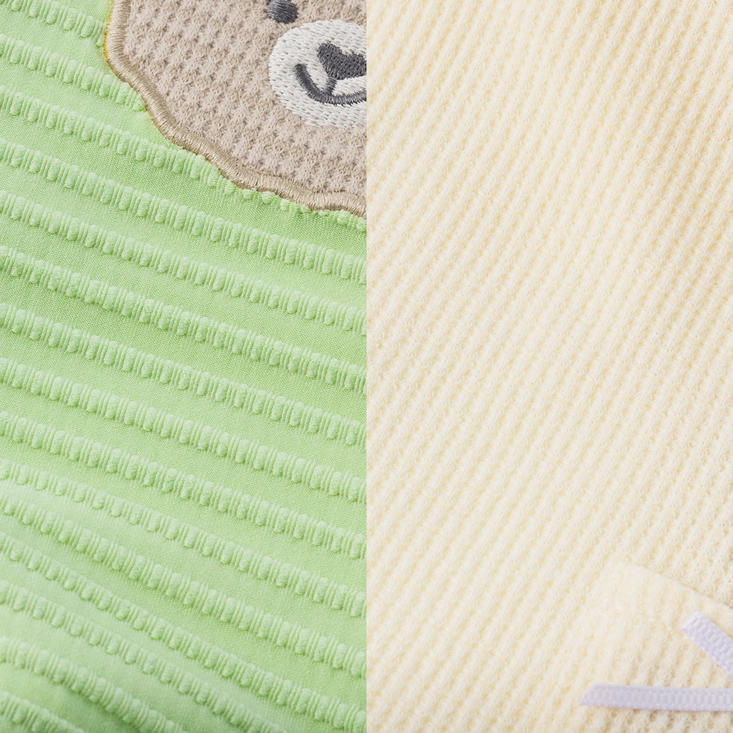オフホワイト/ピンク26/杢グレーは春夏向けの薄手のワッフル素材です。