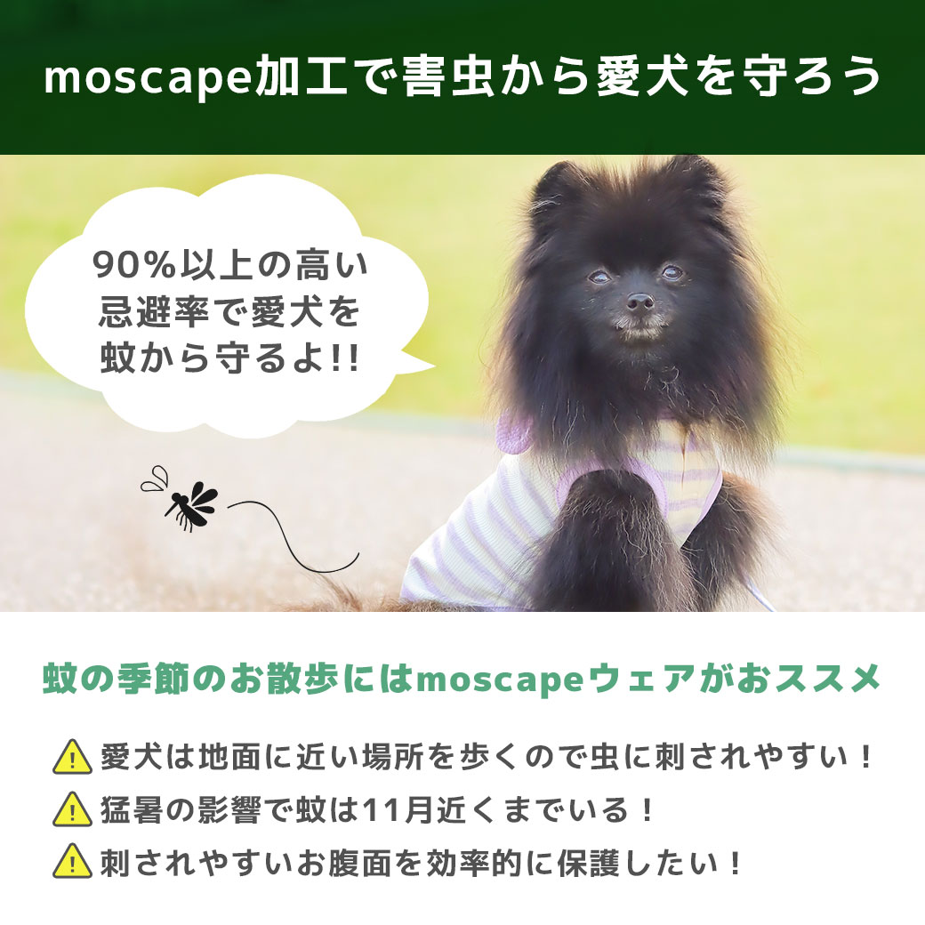 地面に近いと虫にさされやすいよね。moscapeウェアで愛犬を守ってあげてくださいね。