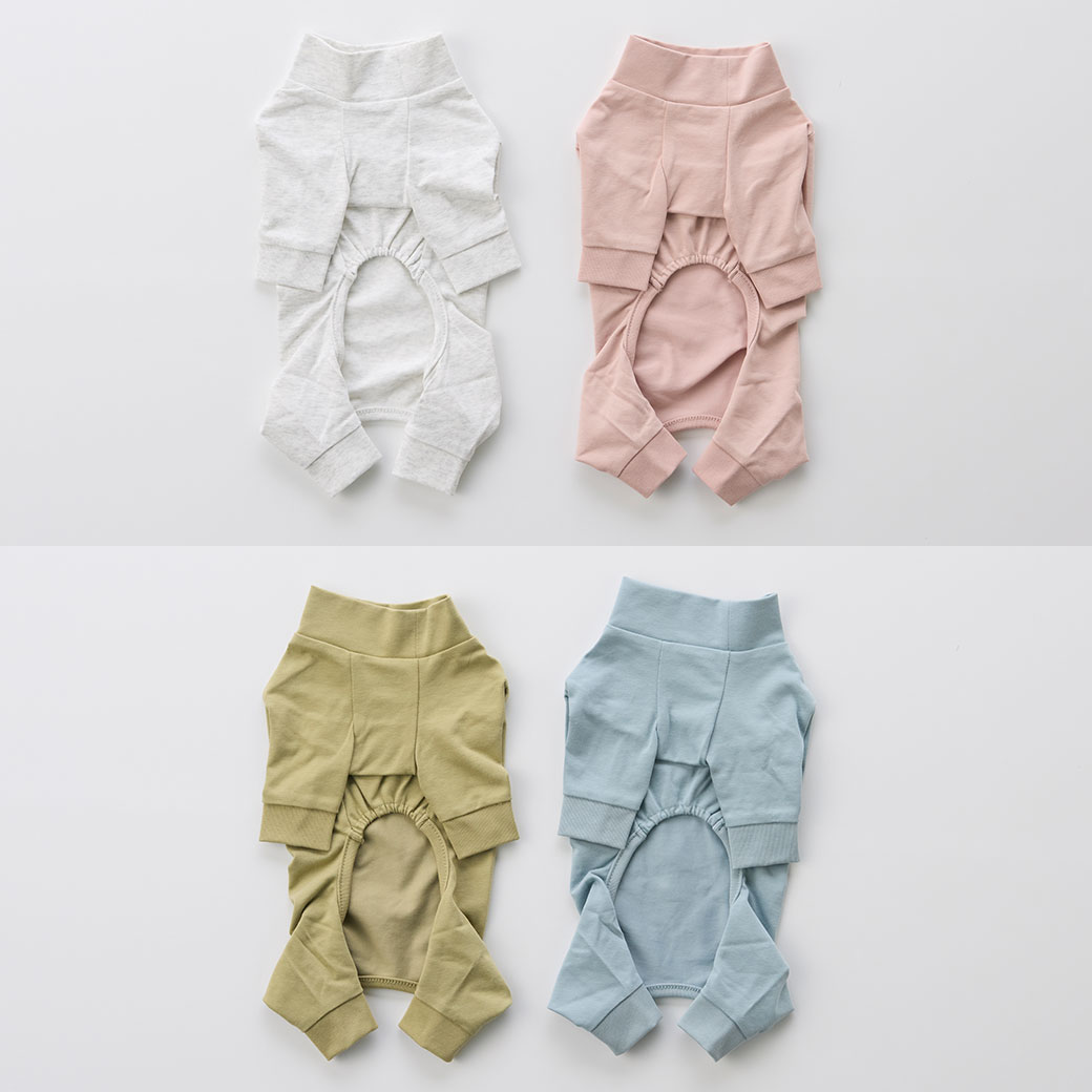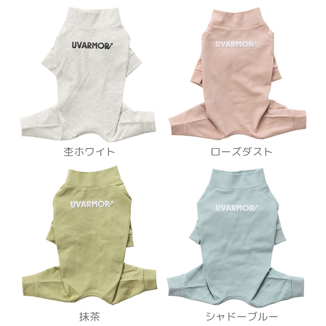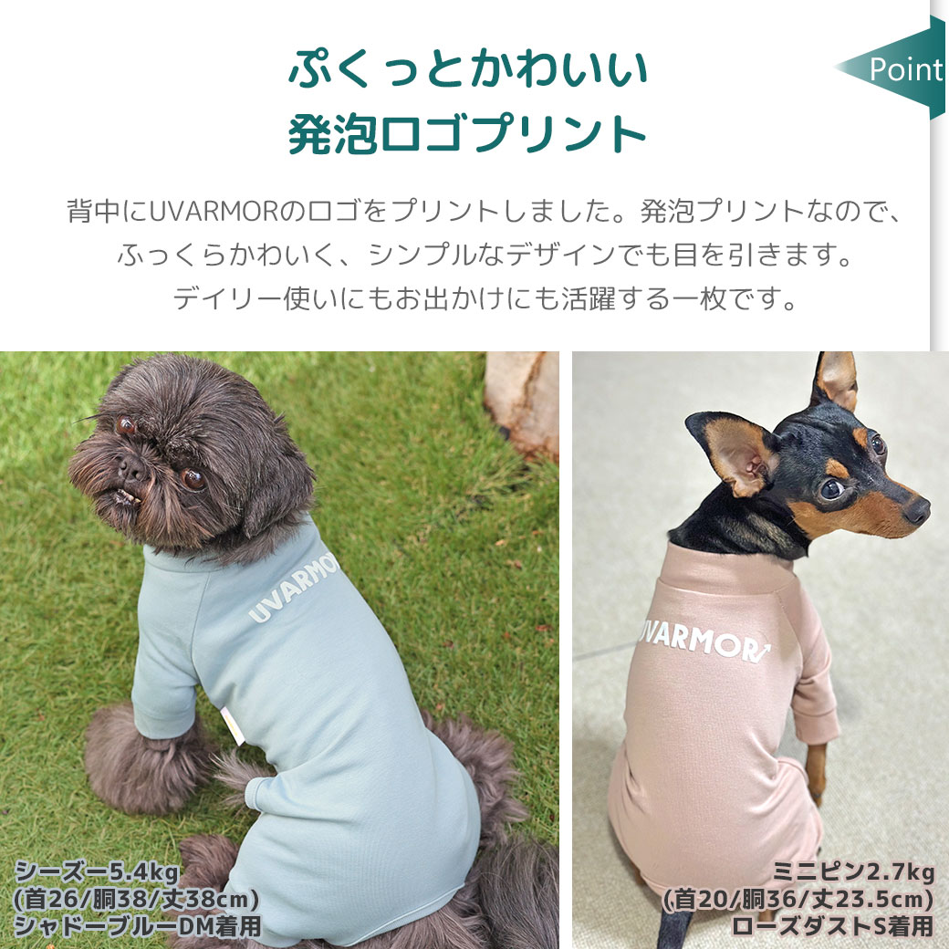 夏の暑さや紫外線から愛犬を守ってくれる、5つの機能(遮熱・UVカット・冷感・抗菌・マイナスイオン)を持った素材を使用したカバーオールです。 春夏シーズンのデイリーウェアにぴったりの1枚です。
