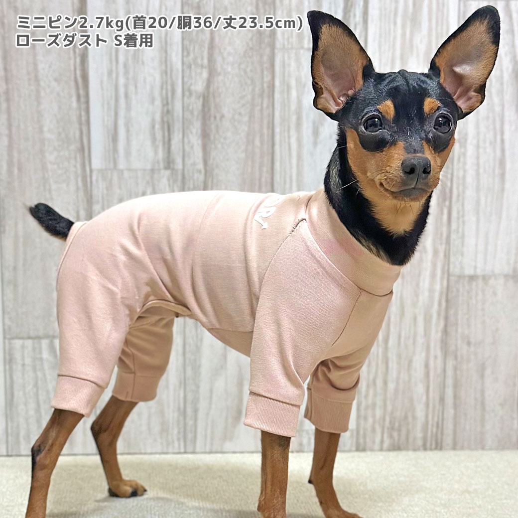 ミニピン2.7kg(首20/胴36/丈23.5cm)のルナちゃんはローズダストのSを着用