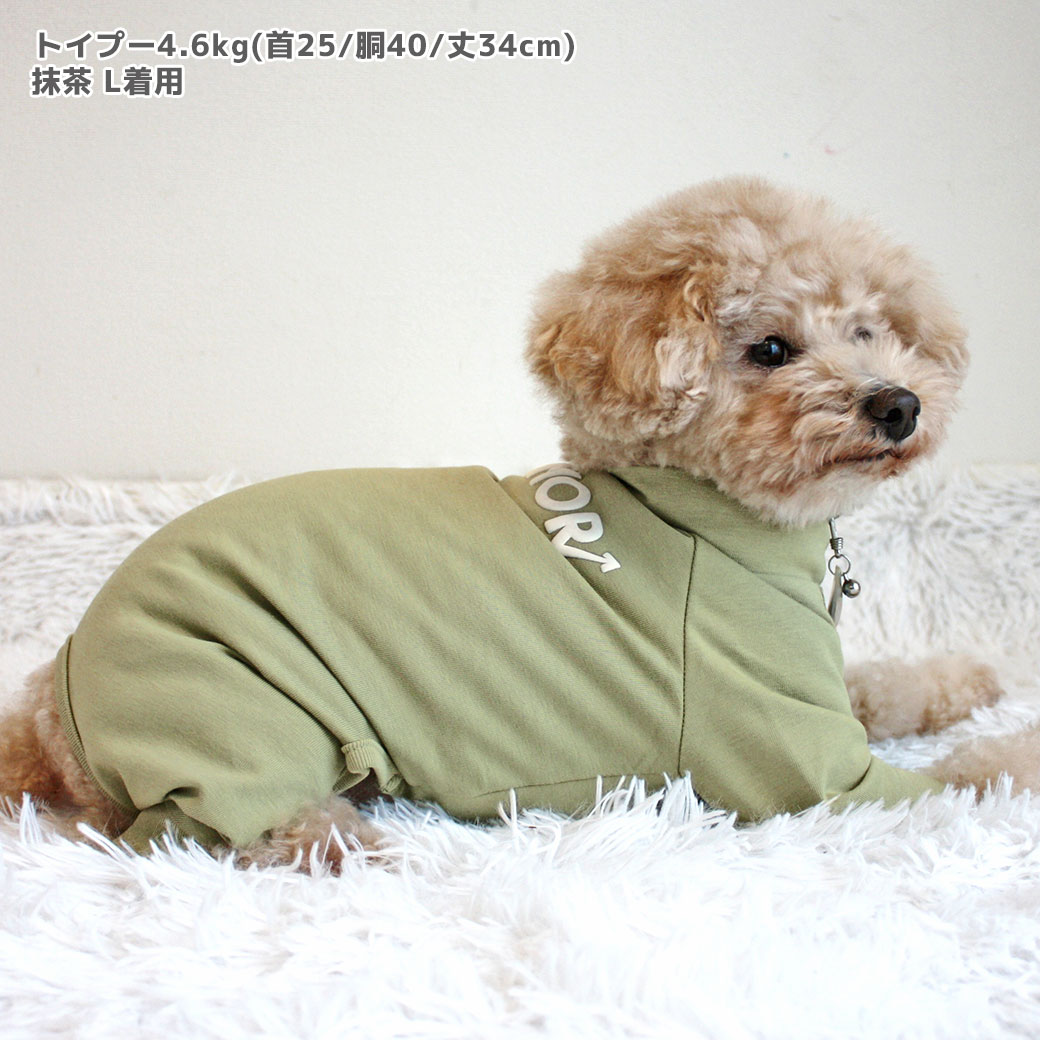 トイプー4.6kg(首25/胴40/丈34cm)のフク丸くんは抹茶のLを着用