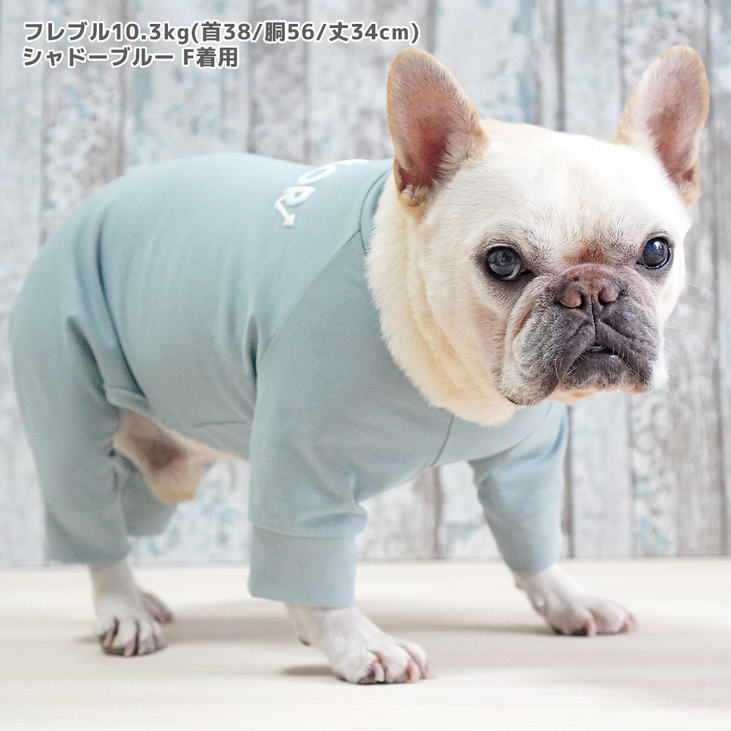 フレブル10.3kg(首38/胴56/丈34cm)のブランくんはシャドーブルーのFを着用
