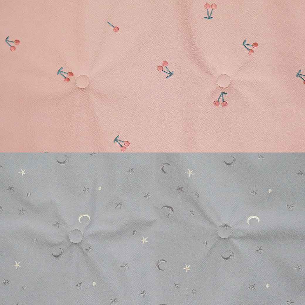可愛いチェリー刺繍と、きらきら輝く星空刺繍。