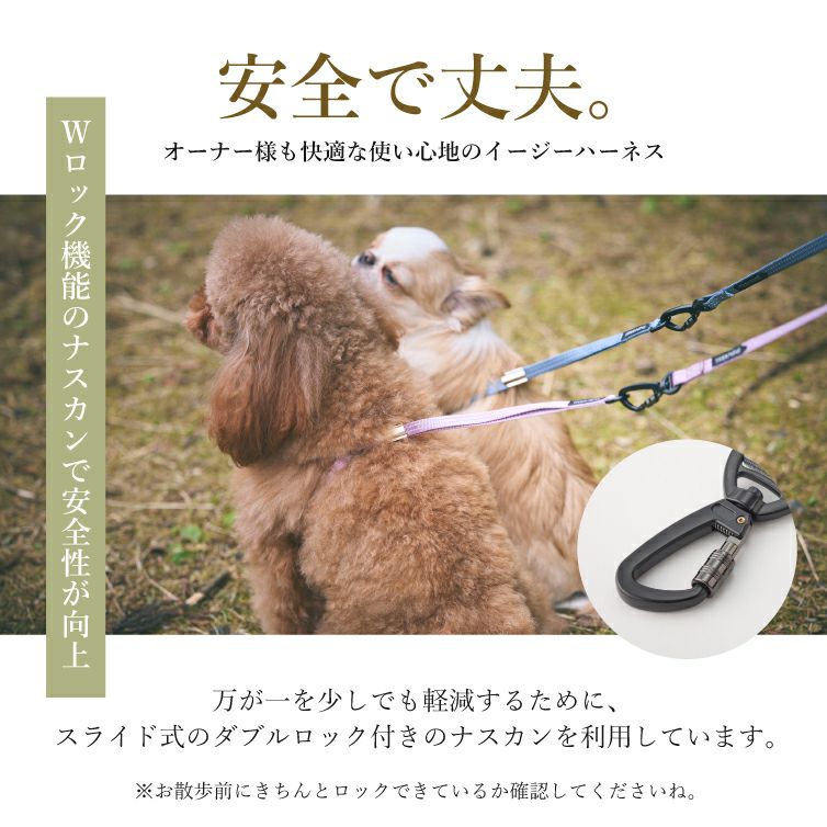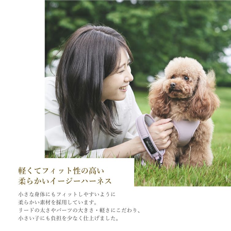 愛犬にピッタリの優しいハーネスで楽しくお散歩してくださいね。