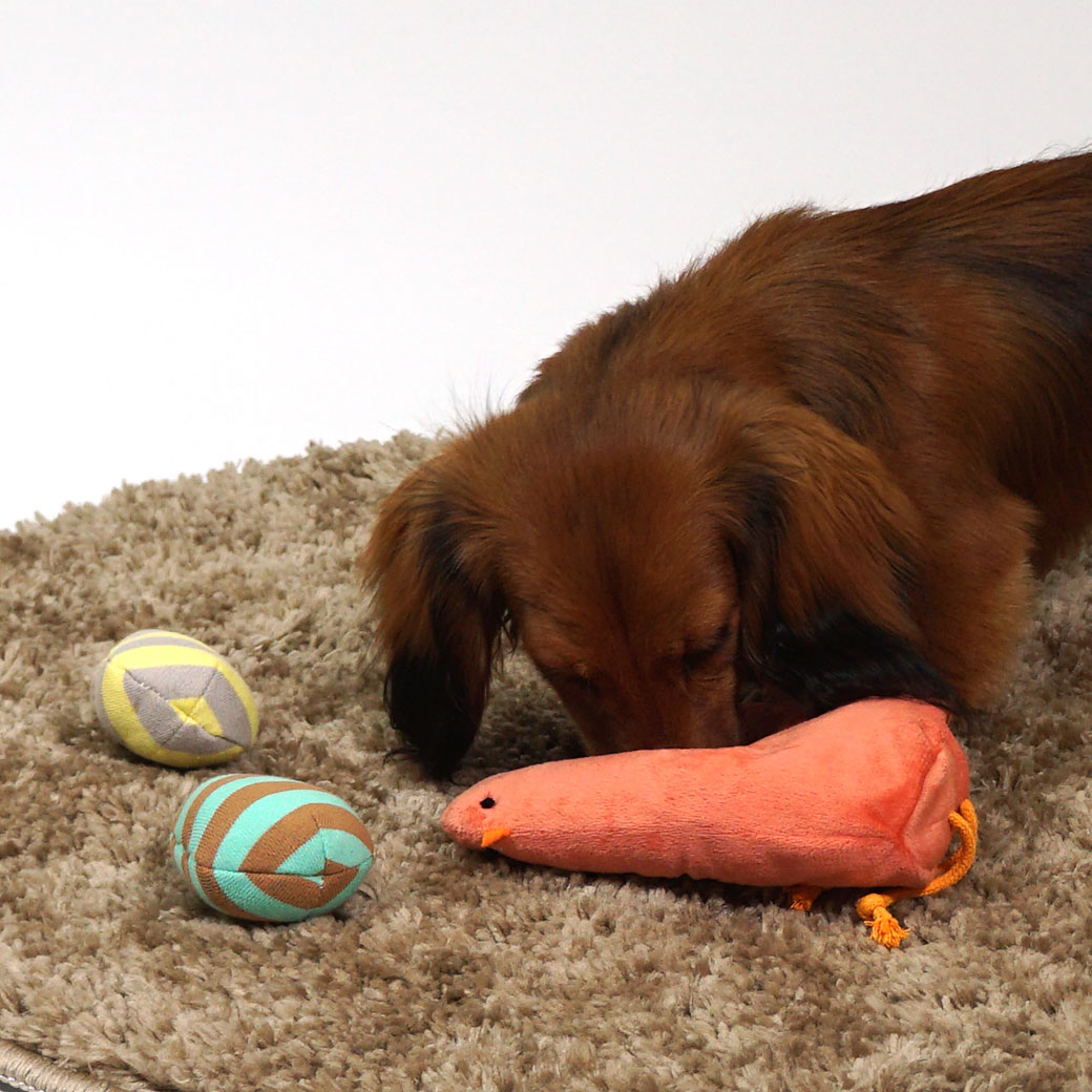 たまごは鳴き笛入りで愛犬の好奇心を引き出します。