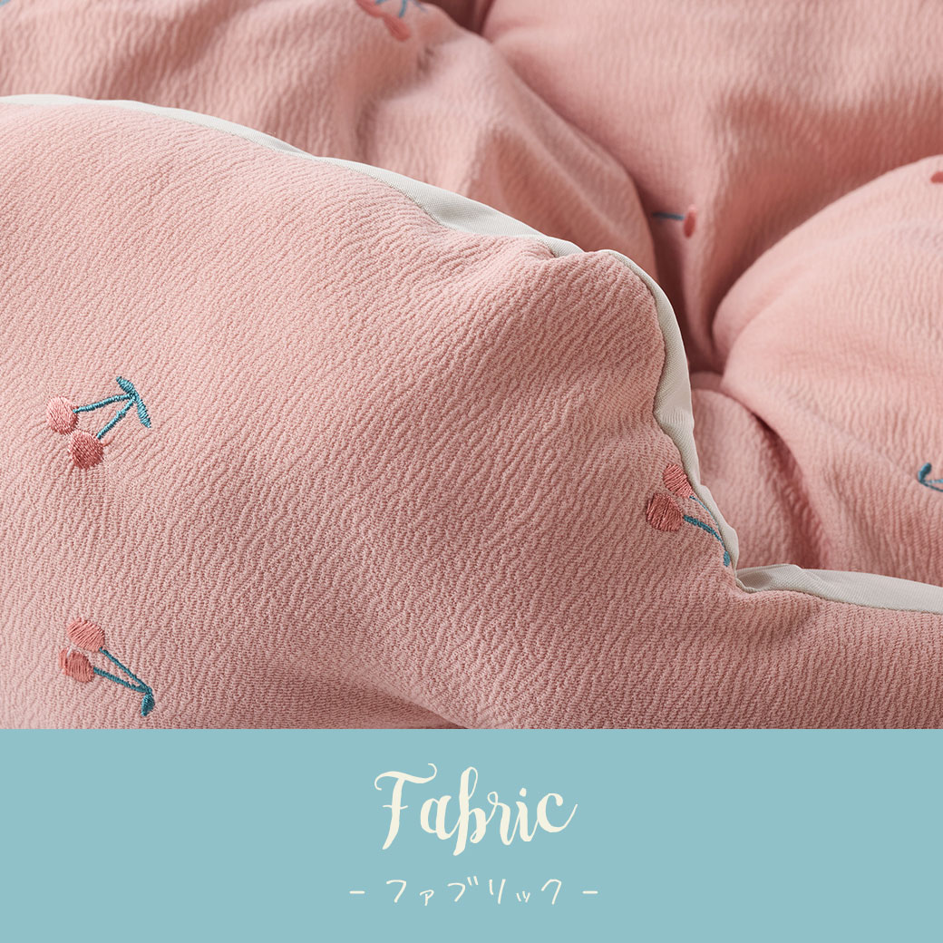 かわいいチェリー刺繍のテキスタイルで、お部屋がふんわりかわいくなる高機能ラウンドベッド。
