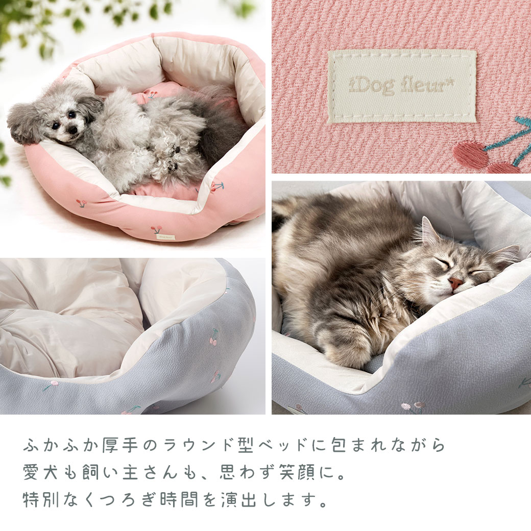 犬 猫 ペット IDOG&ICAT iDog fleur チェリーのラウンドベッド 接触冷感 抗菌 防臭 アイドッグ 国産 家具 インテリア 木製
