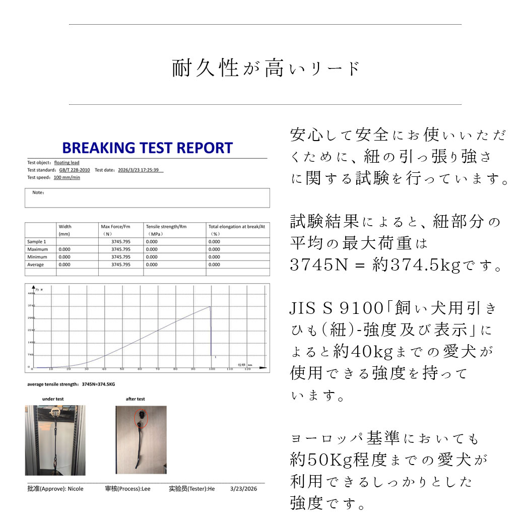 水に浮く素材のリードを使用しているので、水遊びや泳ぐのが好きな愛犬におすすめです。