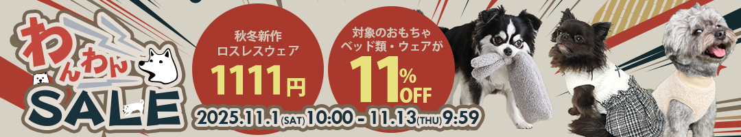 ロスレスウェア1,111円均一SALEや、新作ウェア&おもちゃ&ベッドの11%OFFSALEなどなど!