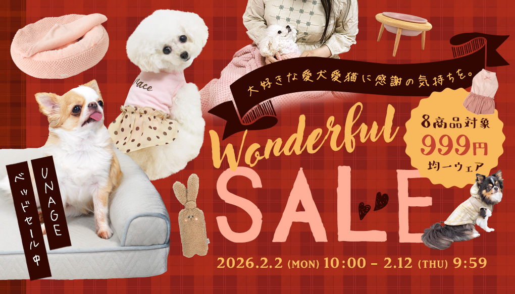 2月14日バレンタインデーは、大切な愛犬&愛猫に 「ありがとう」の気持ちが伝わるプレゼントを贈りませんか? 60点のSALE対象アイテムの中から、きっとぴったりのものが見つかります♪ また、今回は8点のウェアが「999円」SALE対象に!! 今着たいウェア、オールシーズン着たいウェアなどが対象に。 ▼▼対象商品やイベントをチェックしに行きましょう▼▼