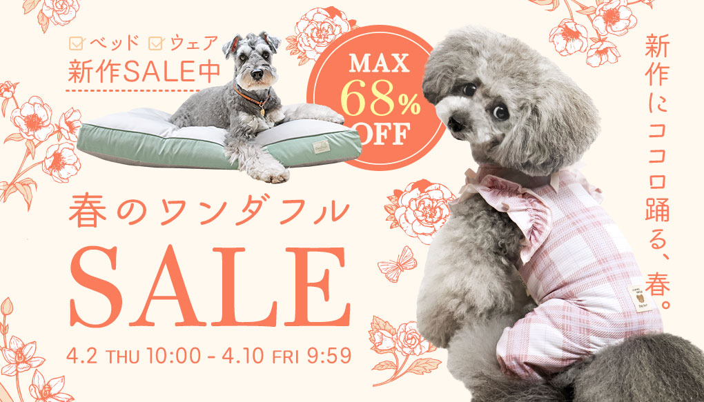 新しいものに胸がトキメキ、春らしいあしらいやカラーにウキっとする心。 IDOG&ICATの春の新作は今年も好評販売中、今なら新作SALEも開催中♪ 今回のワンダフルSALEはMAX68%OFF、対象商品は50点以上をご用意!! ▼▼対象商品やイベントをチェックしに行きましょう▼▼